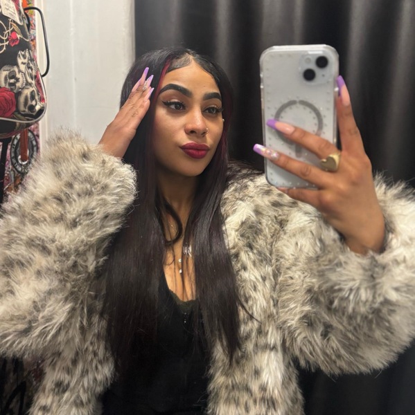 Haare:brünett, rückenlang, glatt