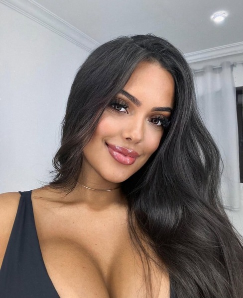 Haare:dunkelbraun, rückenlang, glatt