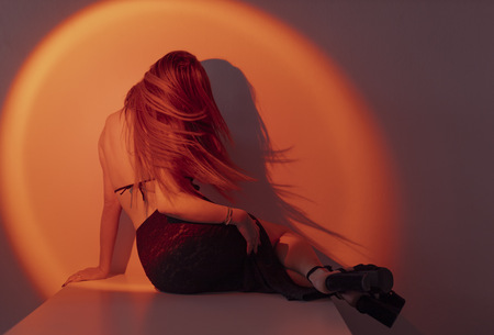 Haare:rotblond, schulterlang, glatt